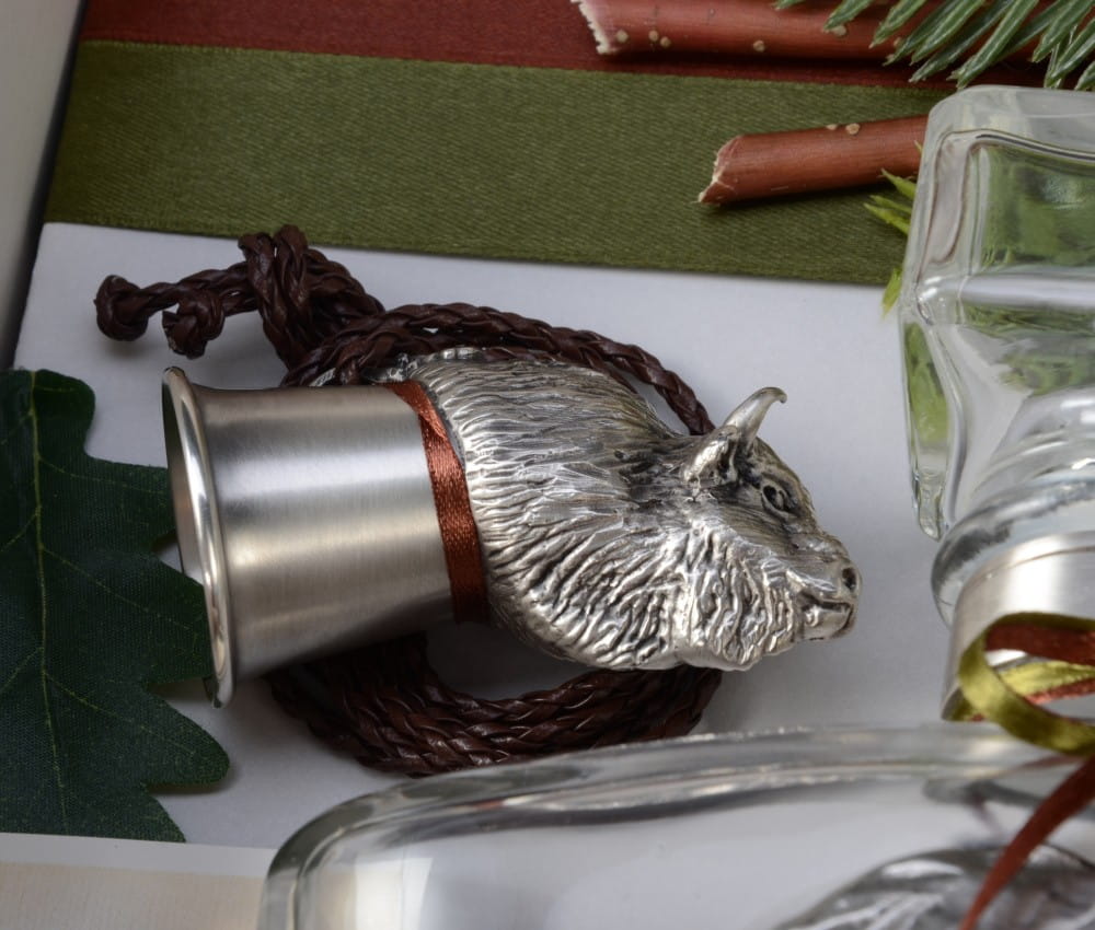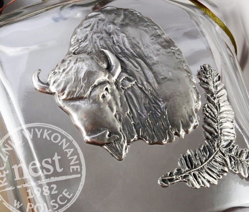 Nasze produkty są inspirowane naturą oraz myślistwem. Przekształcamy twórczo łowieckie motywy, by zaoferować ich pasjonatom stylowe kolekcje w gotowych zestawach, idealnych na elegancki prezent. Szklana karafka wykonana we włoskiej manufakturze ze srebrzoną aplikacją w formie żubra z polskiej firmy Nest wraz z kulawką w kształcie głowy żubra stanowią doskonały komplet dla myśliwego, dopełniony przez artystyczne opakowanie utrzymane w leśnej stylistyce.