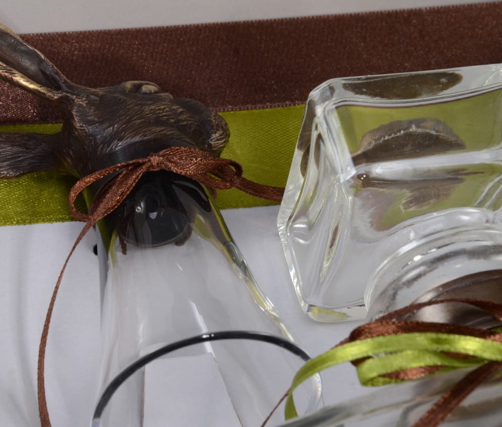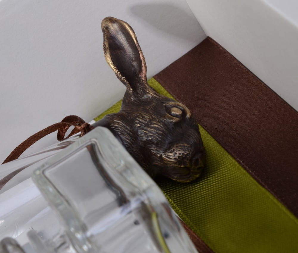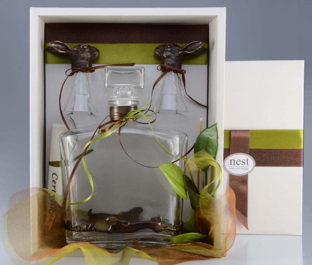 Każdy myśliwy z dumą poda po udanym polowaniu whisky lub nalewkę w oryginalnej oprawie. Zestaw karafka i dwa kieliszki z motywem zajęcy w wyjątkowy i niespotykany sposób udekoruje myśliwski stół.