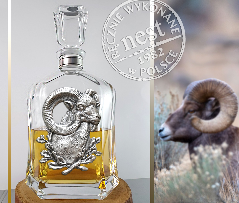 Karafkę z aplikacją muflona stworzyliśmy z myślą o miłośnikach górskiej flory i fauny. Karafka wykonana jest ze szkła, ozdobiona aplikacją z brązu posrebrzonego. Nasze produkty są doskonałym upominkiem dla myśliwego lub leśnika.