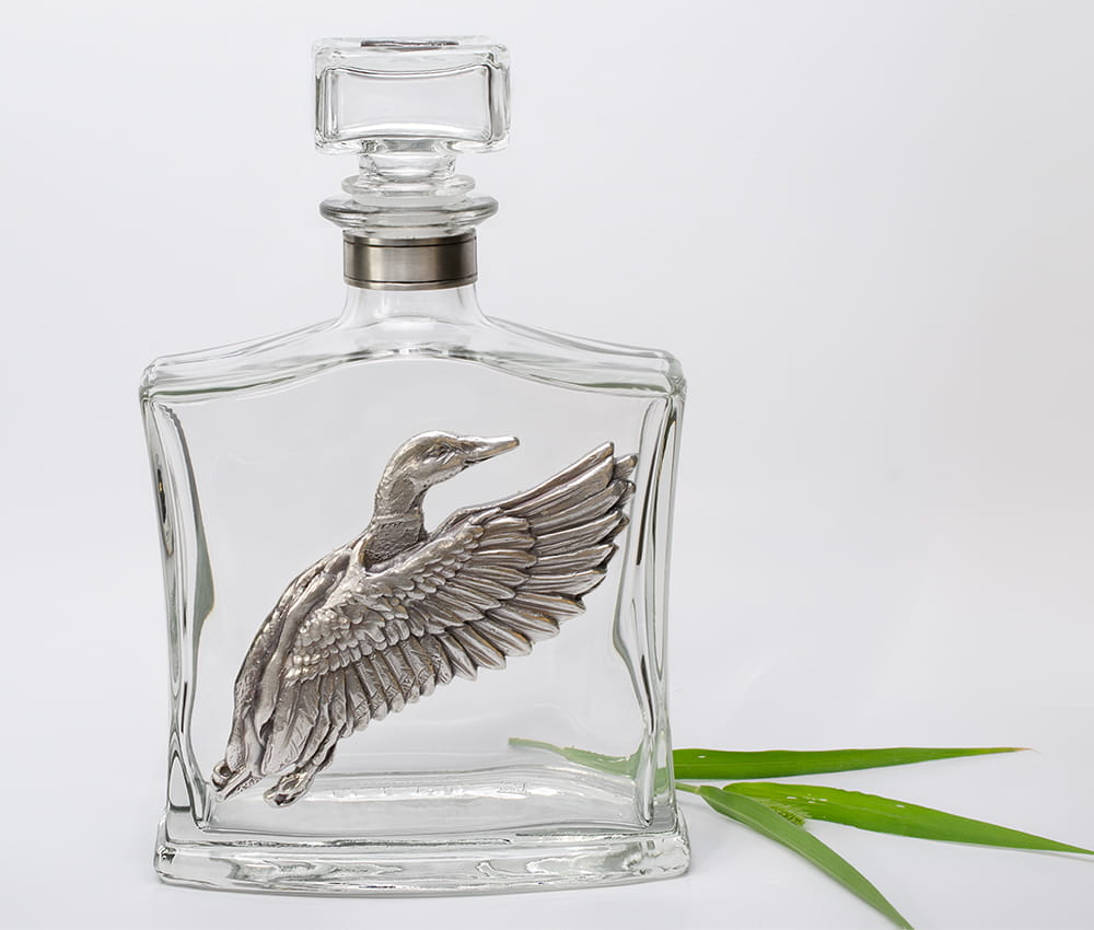 Oryginalna i niepowtarzalna karafka z aplikacją kaczki. Stworzona z myślą o miłośnikach polowań na kaczki. Jest wyjątkowym prezentem oraz wspaniałą pamiątką dla myśliwego.