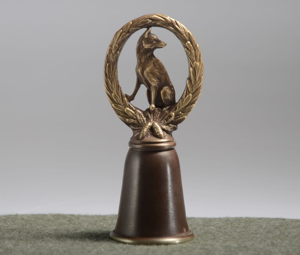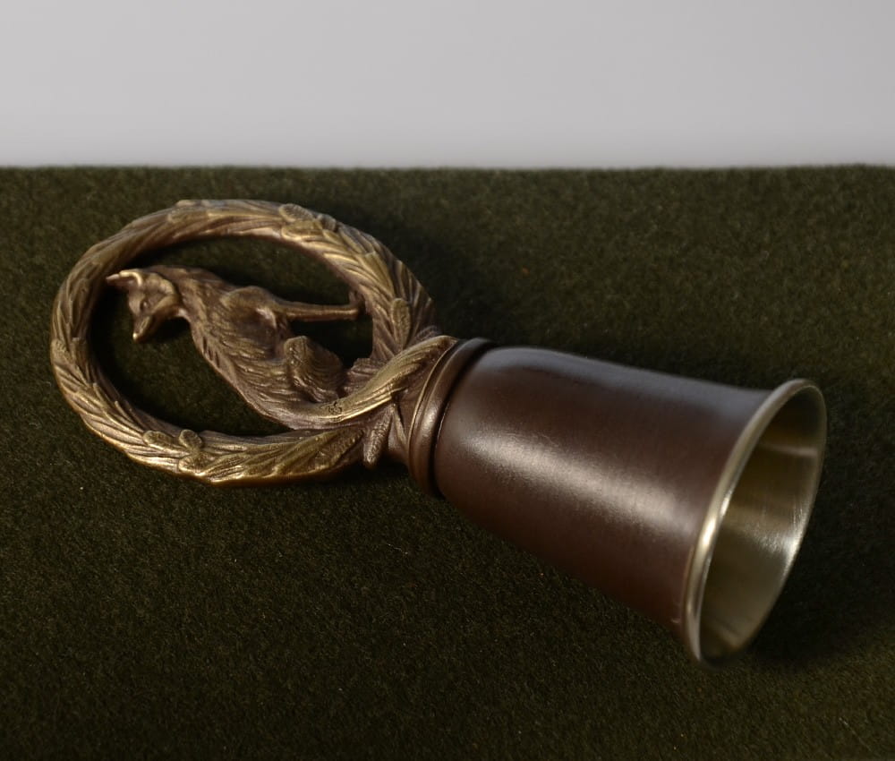 Kulawka to nieodłączny atrybut myśliwego, dlatego nadaliśmy jej atrakcyjną formę lisa w wieńcu. Chcemy, by nie tylko służyła, ale też cieszyła oko podczas myśliwskich spotkań. Kulawkę zrobiliśmy z brązu, a jej eleganckie wykonanie i fantazyjny kształt sprawią, że będzie niezwykle pożądanym przez myśliwych prezentem i odzwierciedleniem ich łowieckiej pasji, która nas inspiruje do tworzenia.