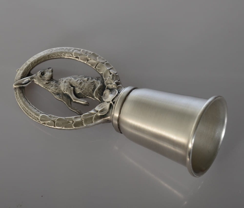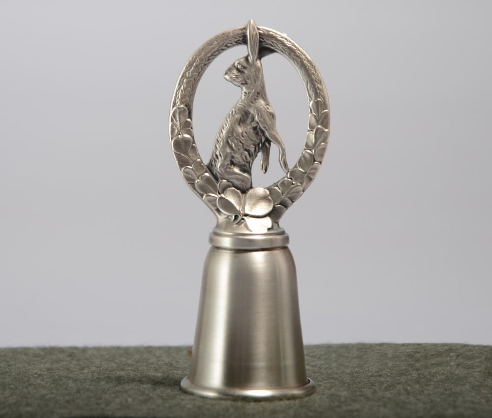 Kulawka którą wykonaliśmy, to wyjątkowy przedmiot, oryginalny dzięki dekoracji w formie zająca w wieńcu. Może stanowić komplet z innymi naszymi produktami z motywem zająca i zapoczątkować całą kolekcję artystycznych myśliwskich akcesoriów. Doskonale nadaje się również na prezent dla myśliwego lub amatora polskiej przyrody.