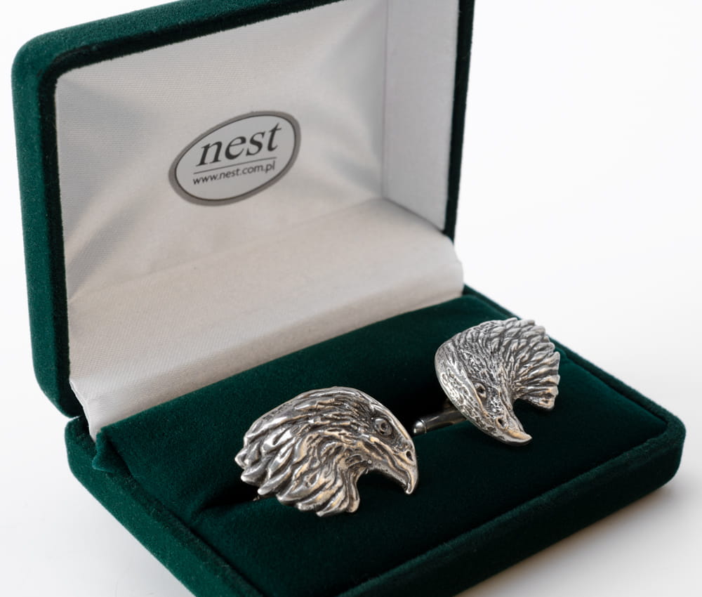 Nasze spinki do mankietów w kształcie głowy sokoła wykonane ze srebra pr. 925. to ciekawy pomysł na prezent dla myśliwego, sokolnika. Luksusowy i jednocześnie praktyczny upominek dla mężczyzny.