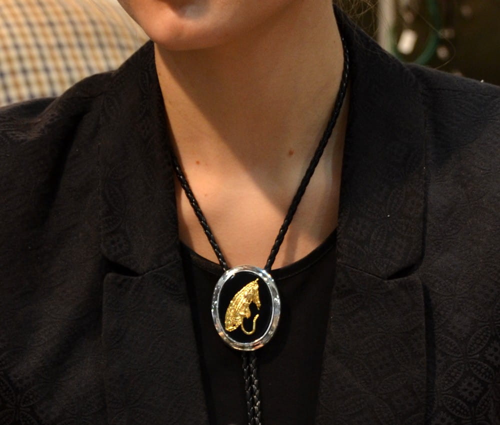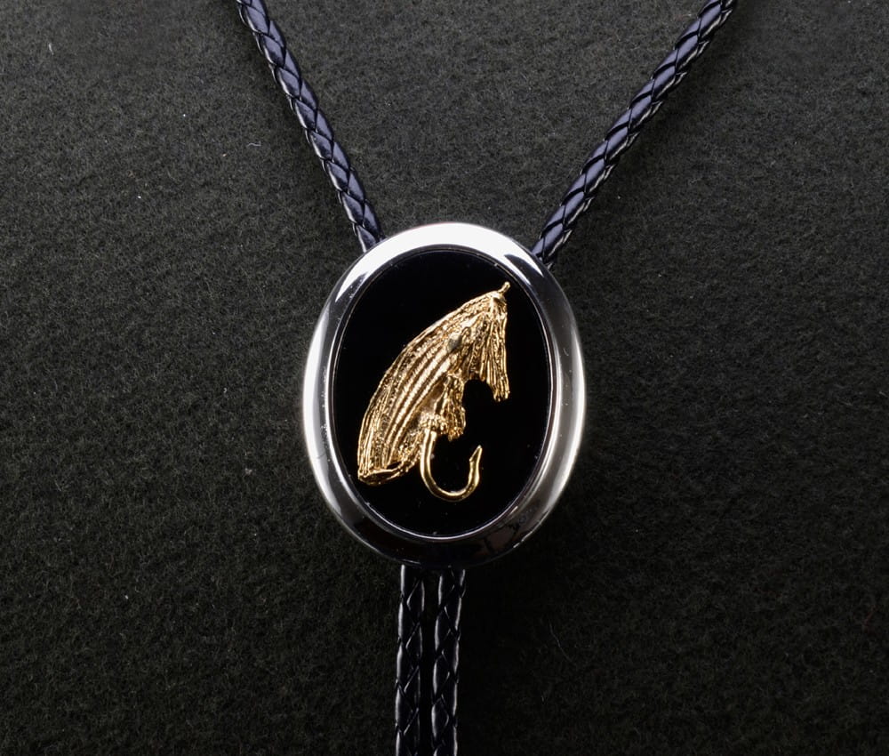 Eleganckie bolo zaprojektowane zostało z myślą o miłośnikach wędkarstwa. Złocony motyw muchy wędkarskiej umieściliśmy na tle wykonanym z naturalnego onyksu, w srebrzonej oprawie. Dzięki połączeniu szlachetnych materiałów i barw biżuteria wędkarska Nest będzie nie tylko znakomitym prezentem dla mężczyzny, ale również szykowną ozdobą kobiecego stroju.